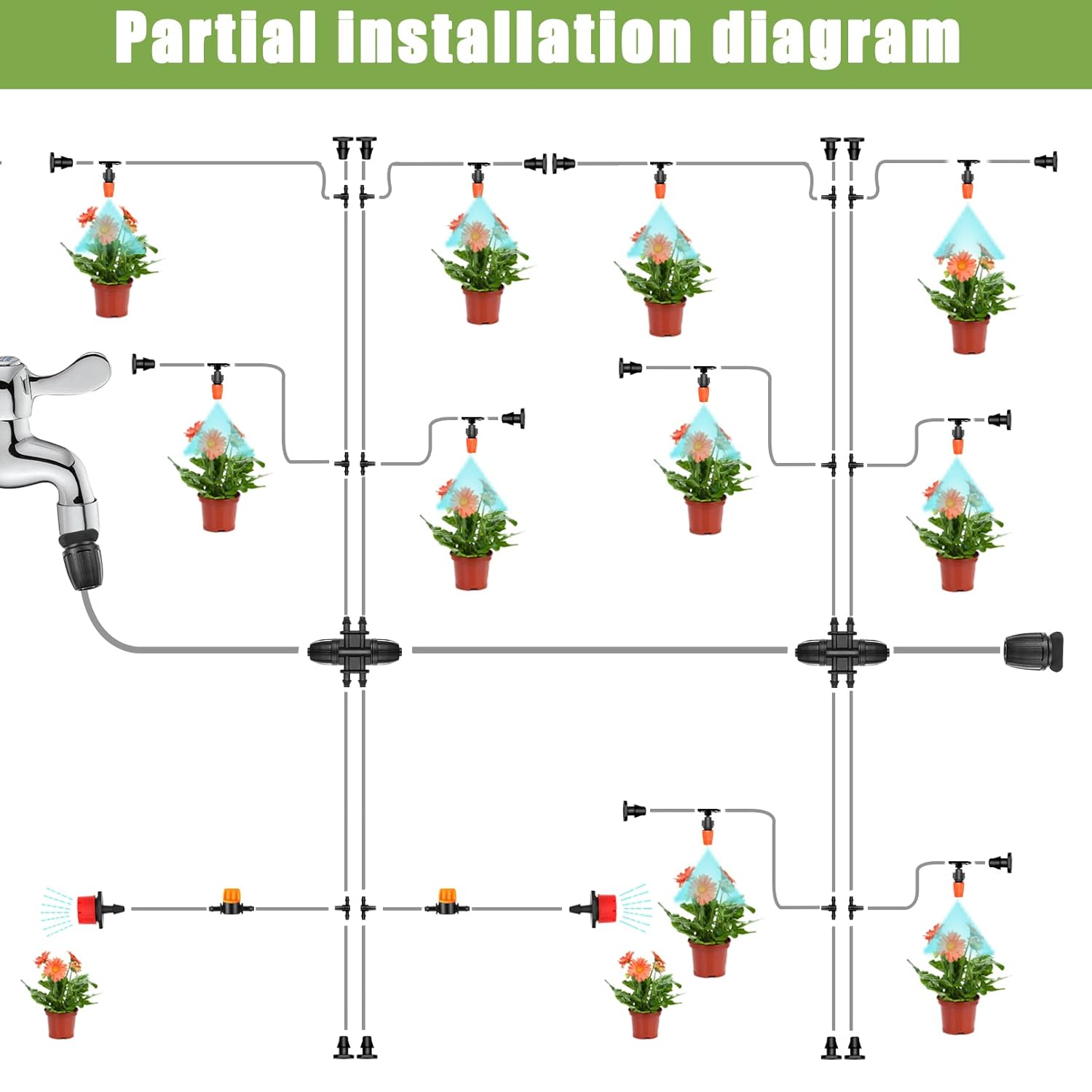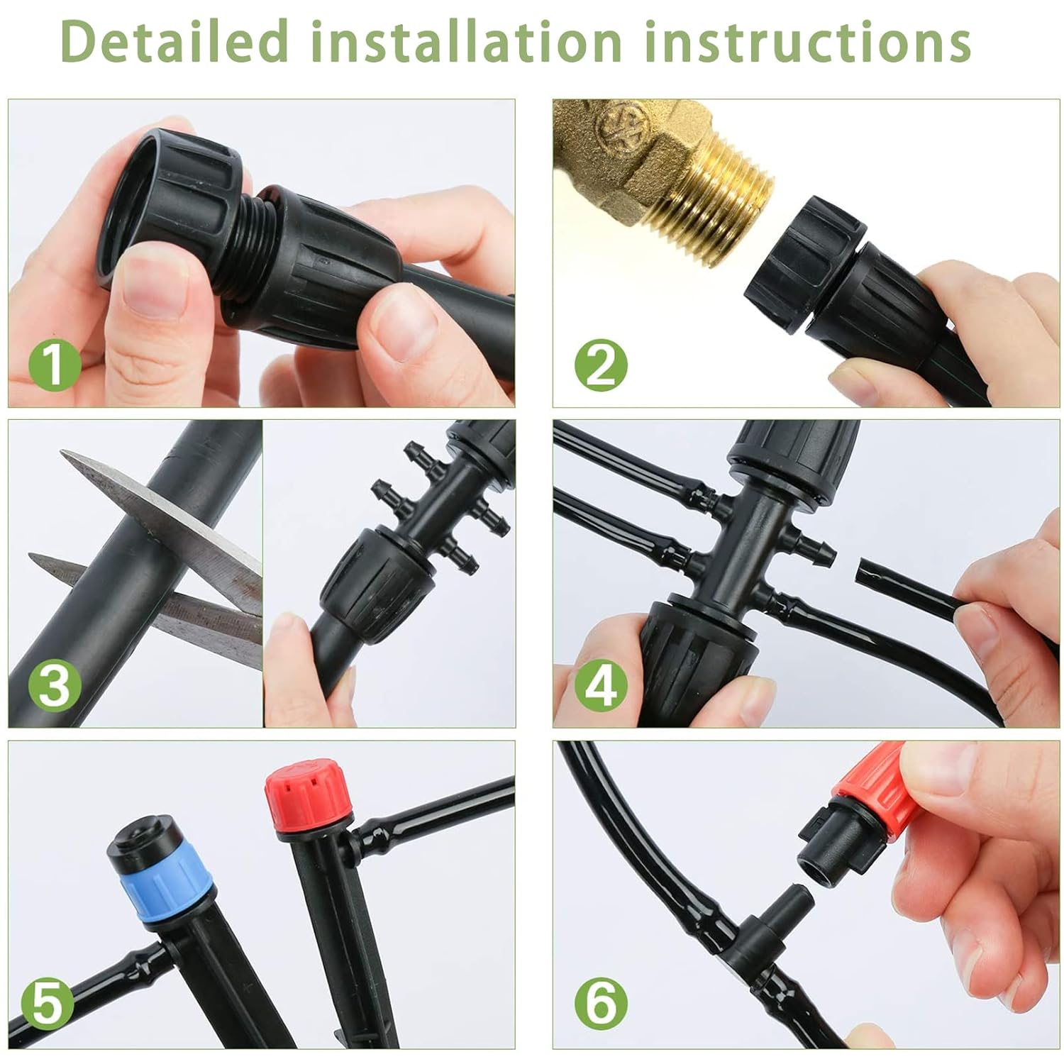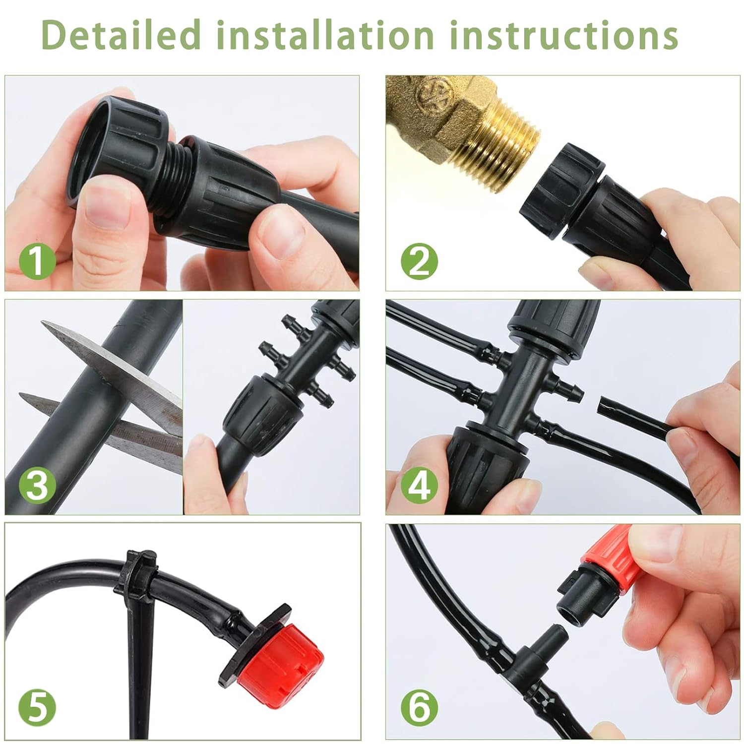 - 【DIY TUBE LENGTH & EASY TO INSTALL】Just straightly cut the irrigation tube to the length for your different needs by your own knife or scissors. It's easy to install this upgraded misting irrigation kit with our plenty adapters and it doesn't consume extra electricity or energy when install so will save your money.
