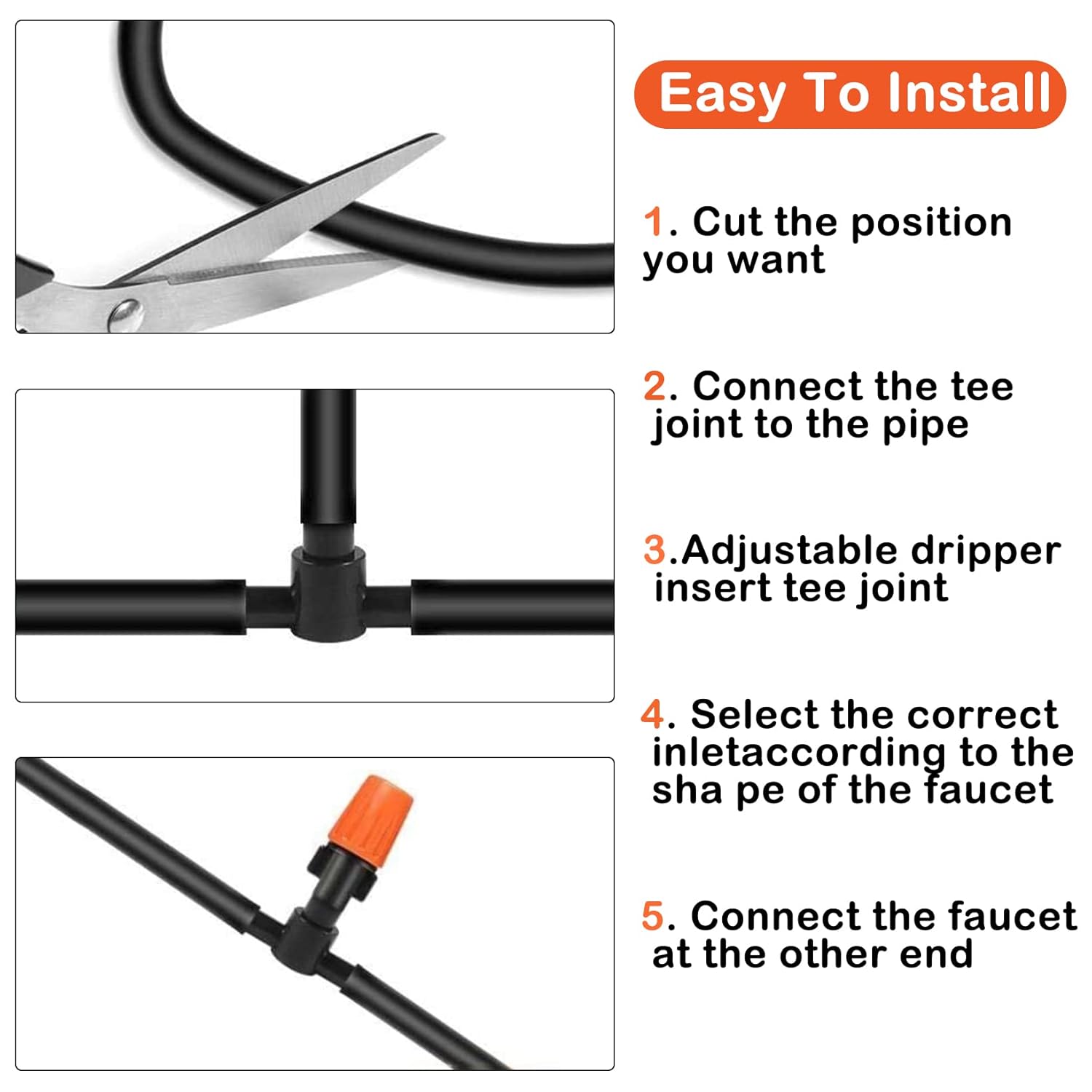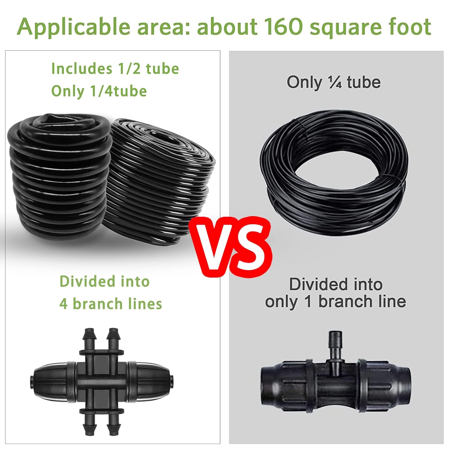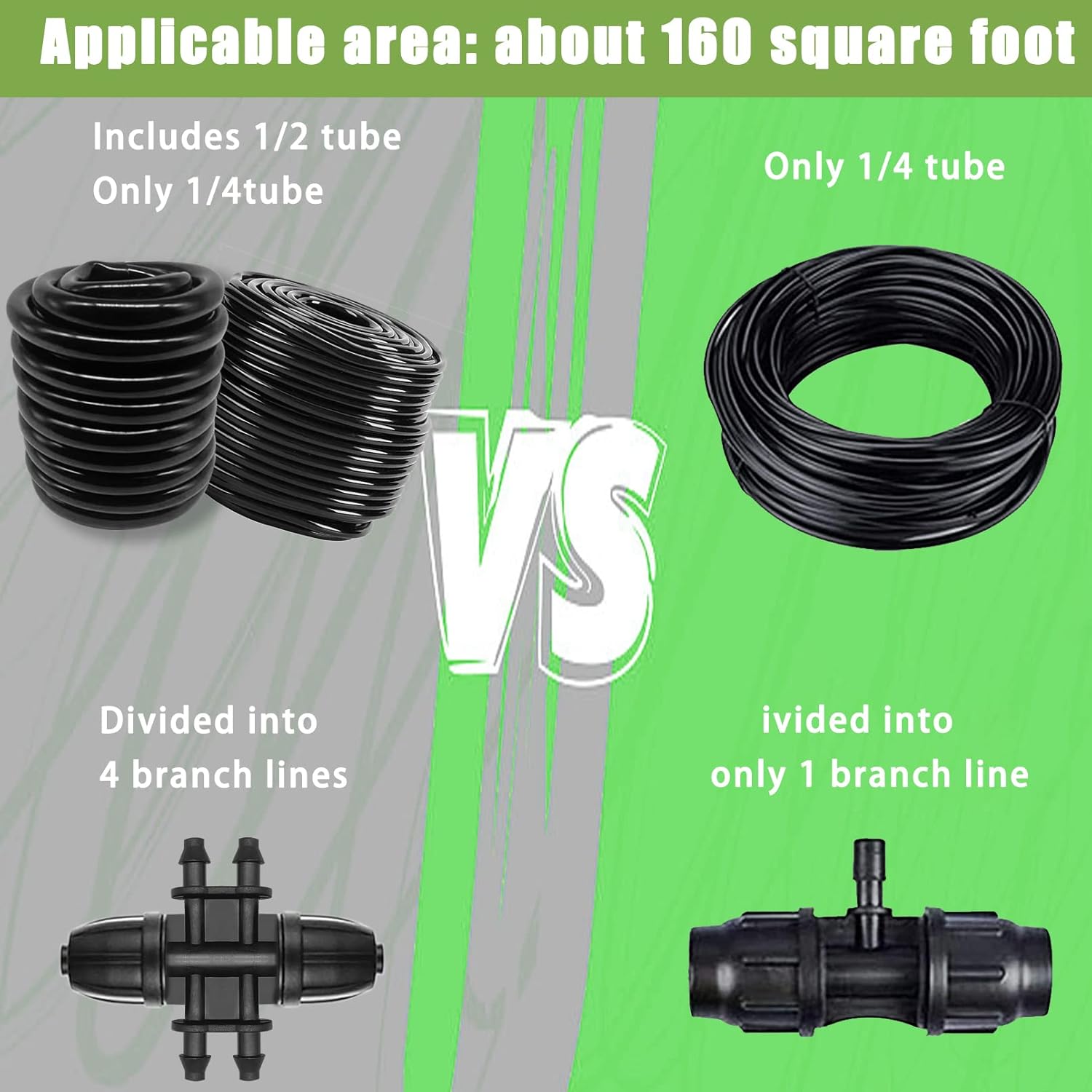 - 【DIY TUBE LENGTH & EASY TO INSTALL】Just straightly cut the irrigation tube to the length for your different needs by your own knife or scissors. It's easy to install this upgraded misting irrigation kit with our plenty adapters and it doesn't consume extra electricity or energy when install so will save your money.