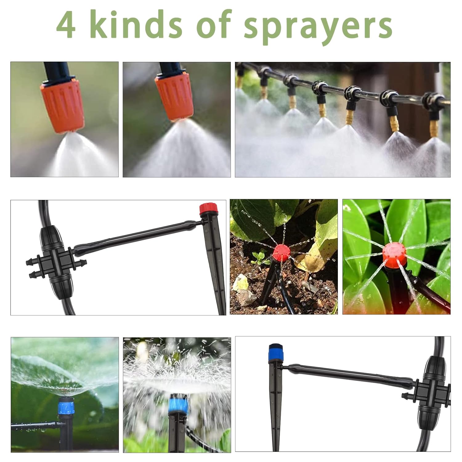 - 【PERFECT FOR WATERING PLANTS】The automatic irrigation system is perfect watering system for lawn, patio, backyard, garden plants, vegetables, greenhouse plants, green gallery plants, flowers, swimming pool, fruit trees irrigation, and etc.