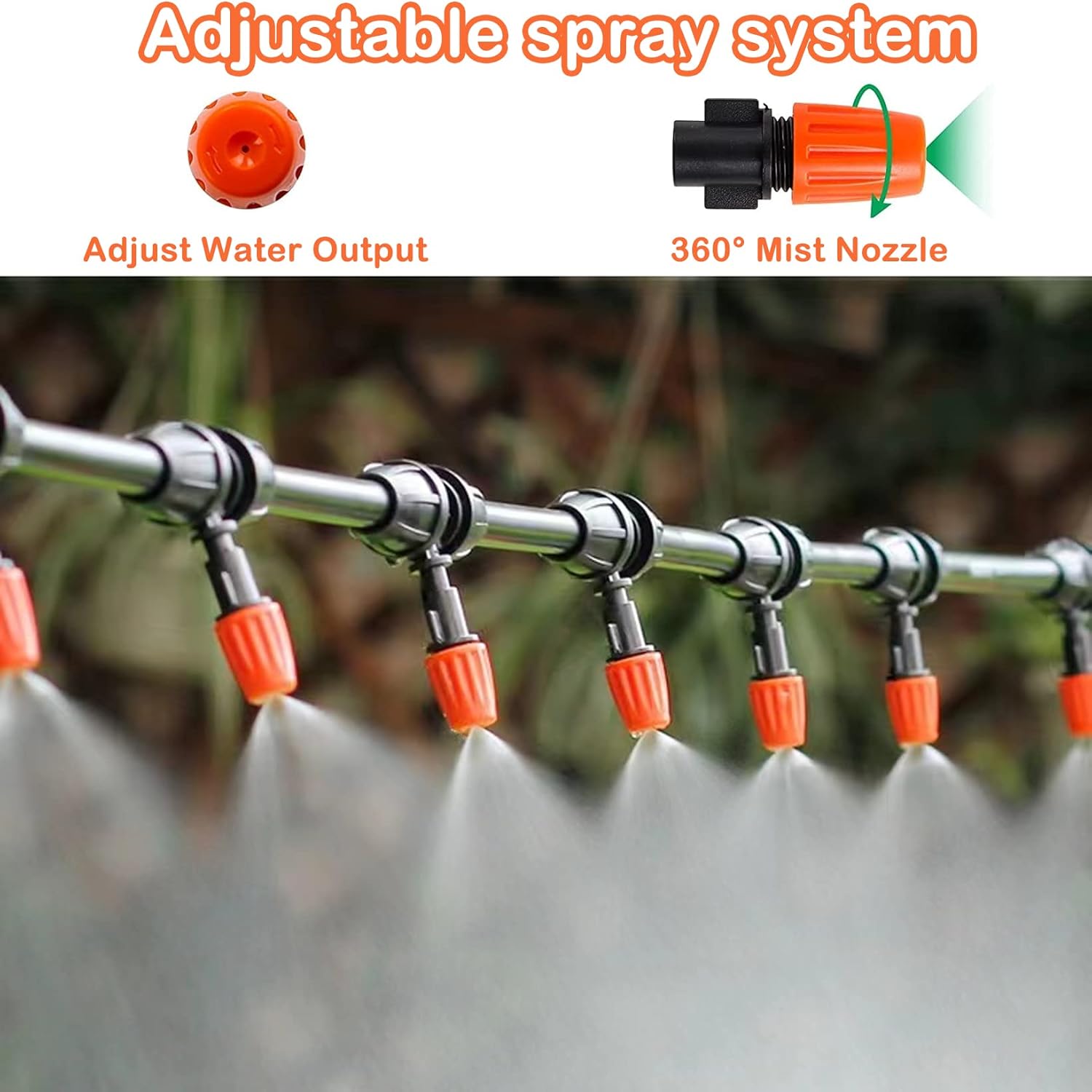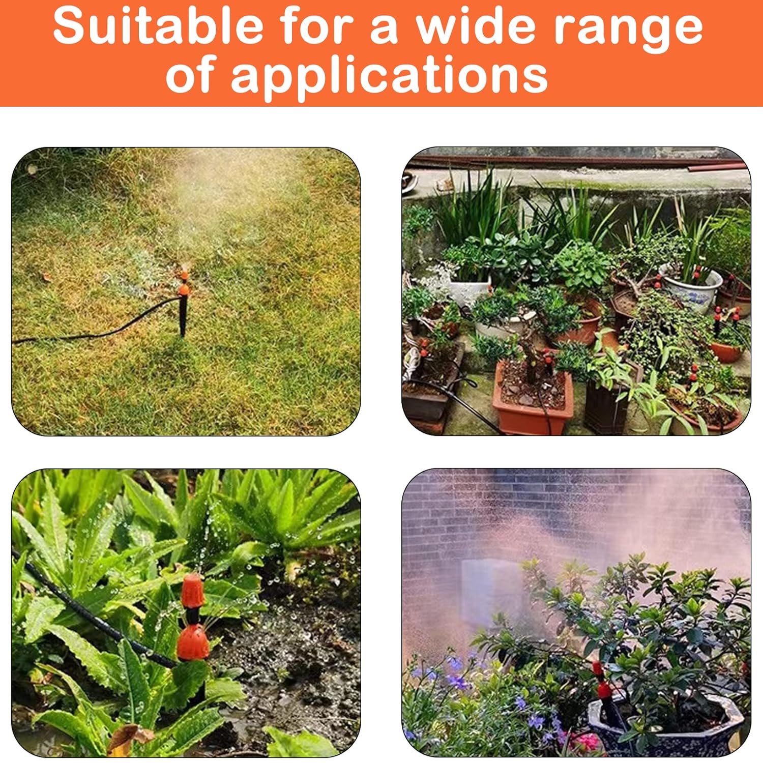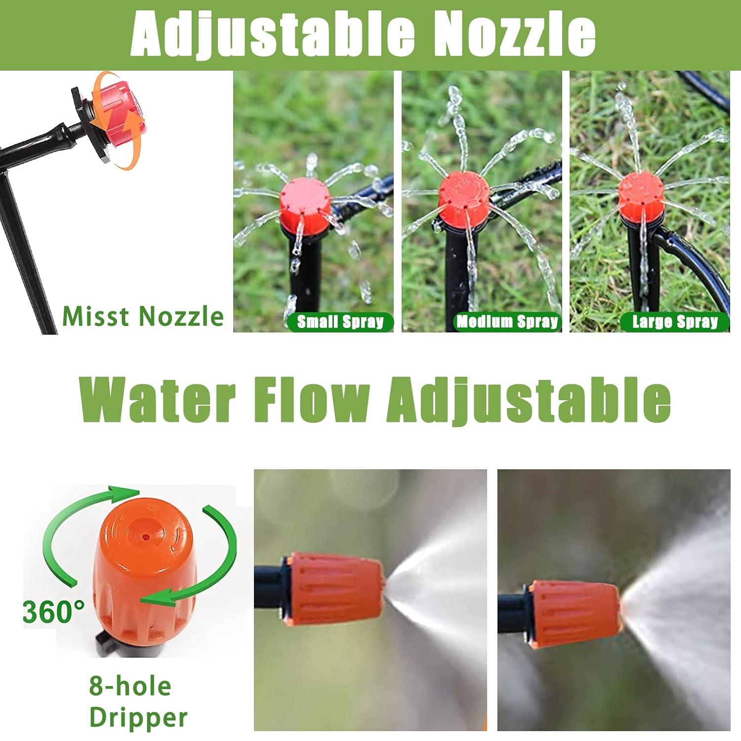 - 【3 MODES OF WATER PRESSURE】Compared with traditional irrigation systems, our adjustable misting irrigation system can save over 70% of water thanks to its adjustable brass misting nozzles which can spray right water according to your different needs in 3 modes-small, medium and large.