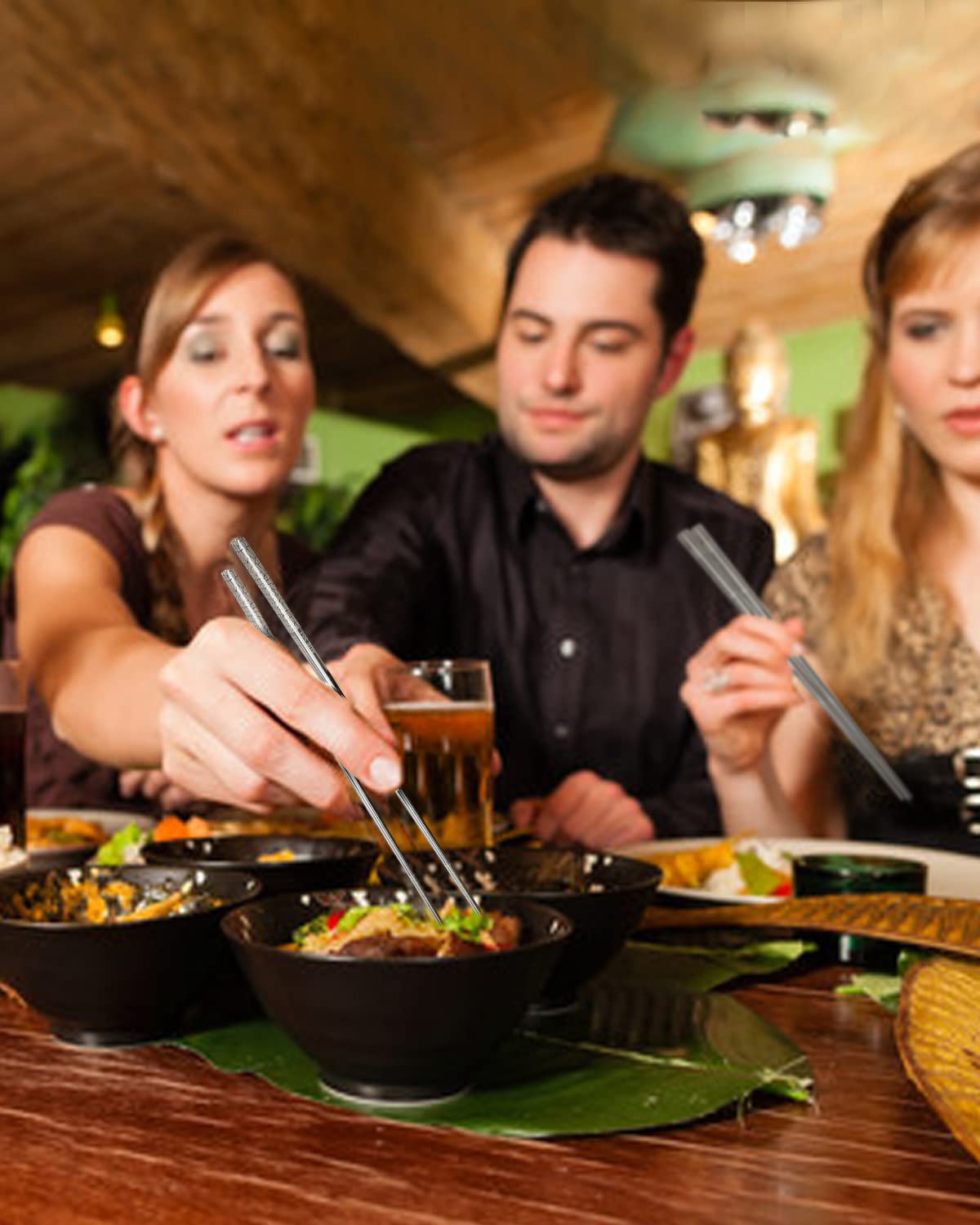 Hygienic & Safe: Unlike bamboo or wooden chopsticks, our stainless steel version is non-absorbent, preventing bacteria buildup and ensuring long-term cleanliness.