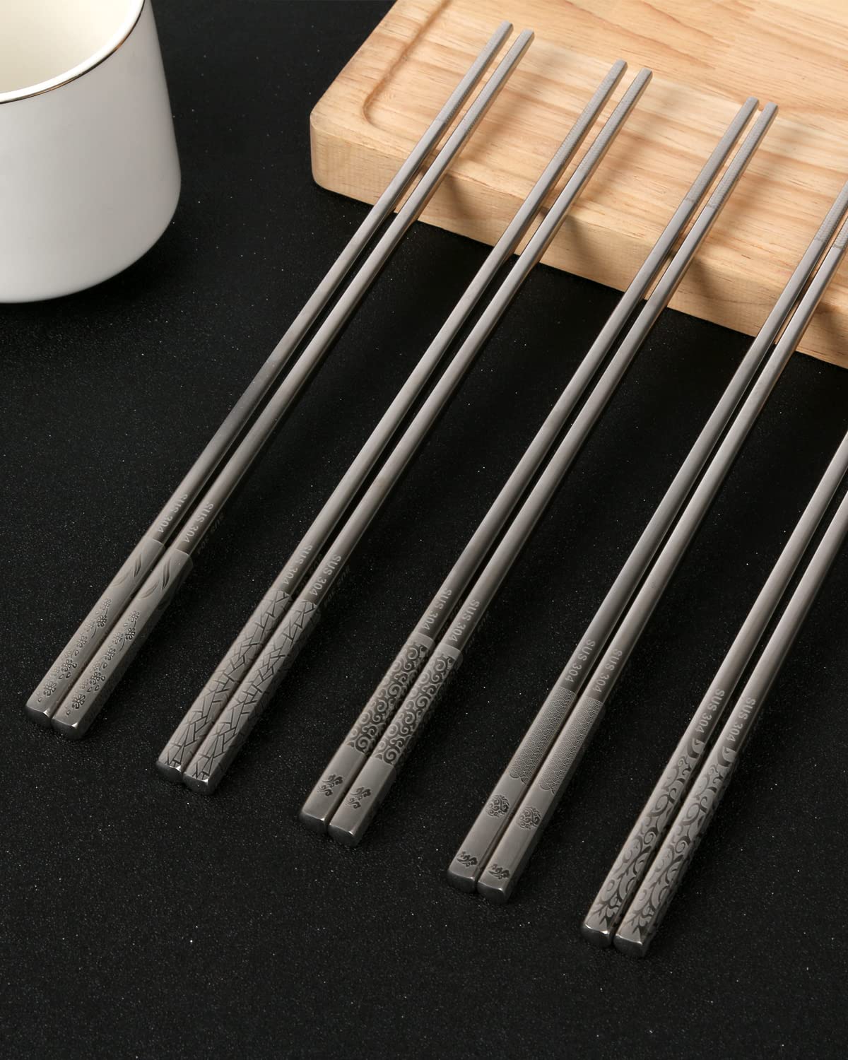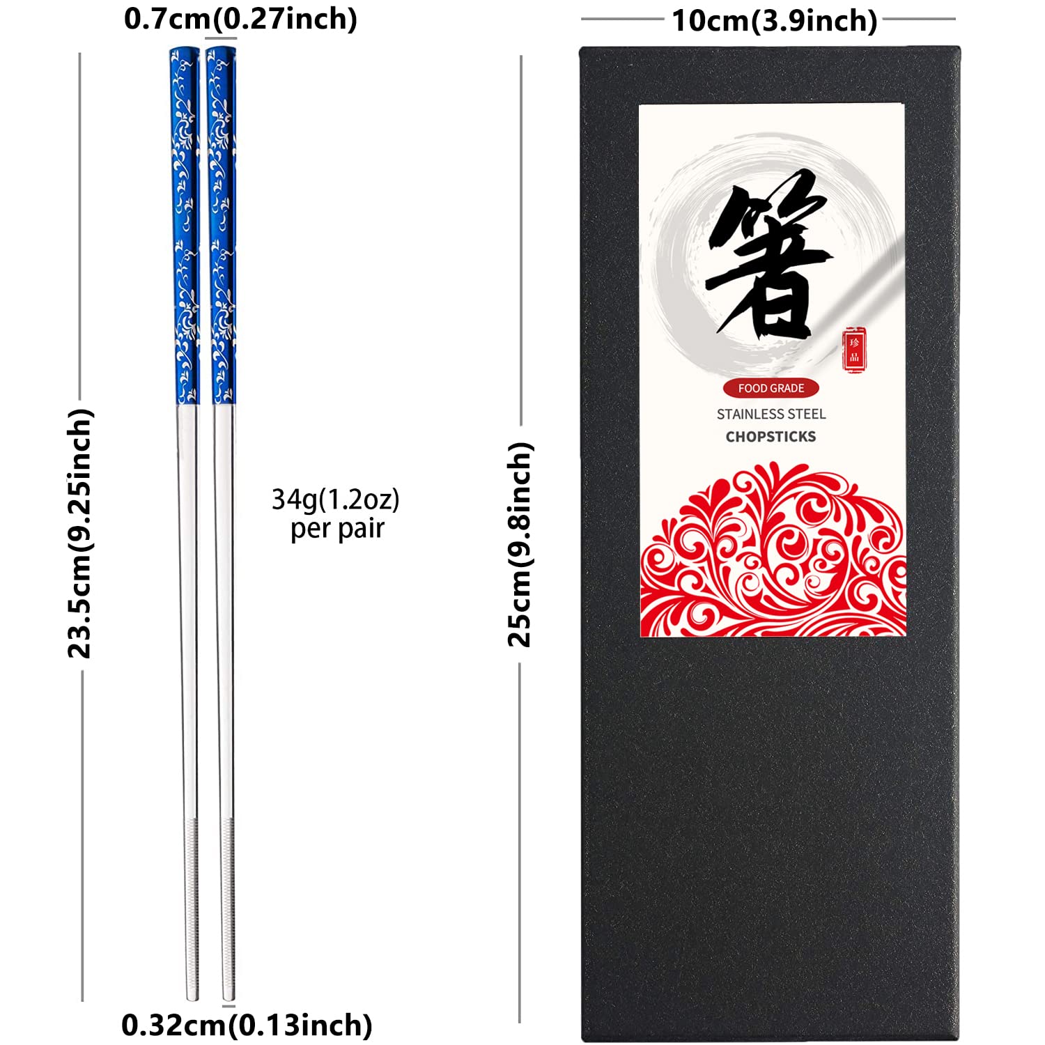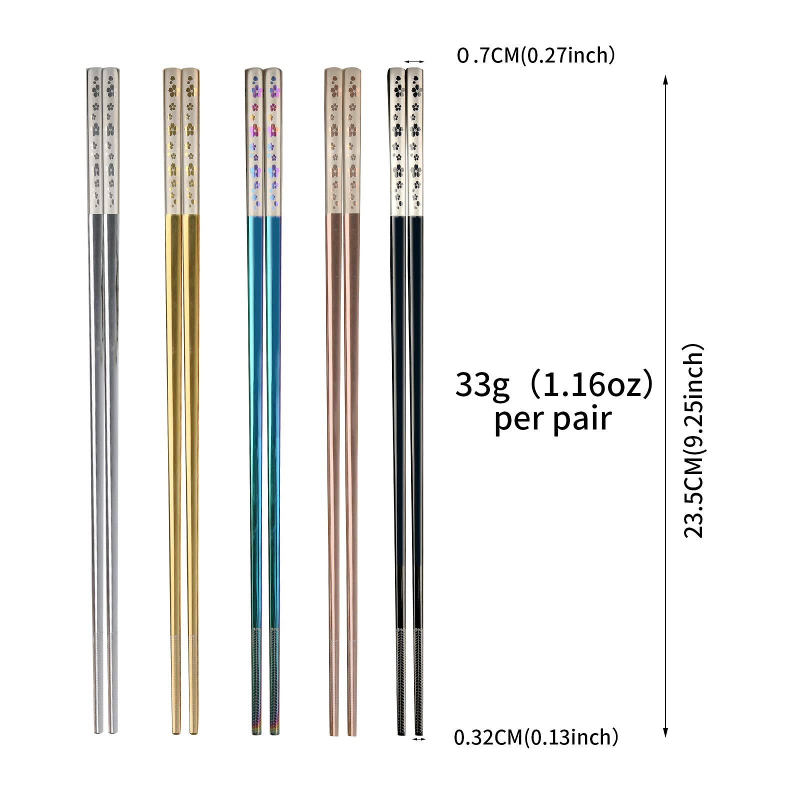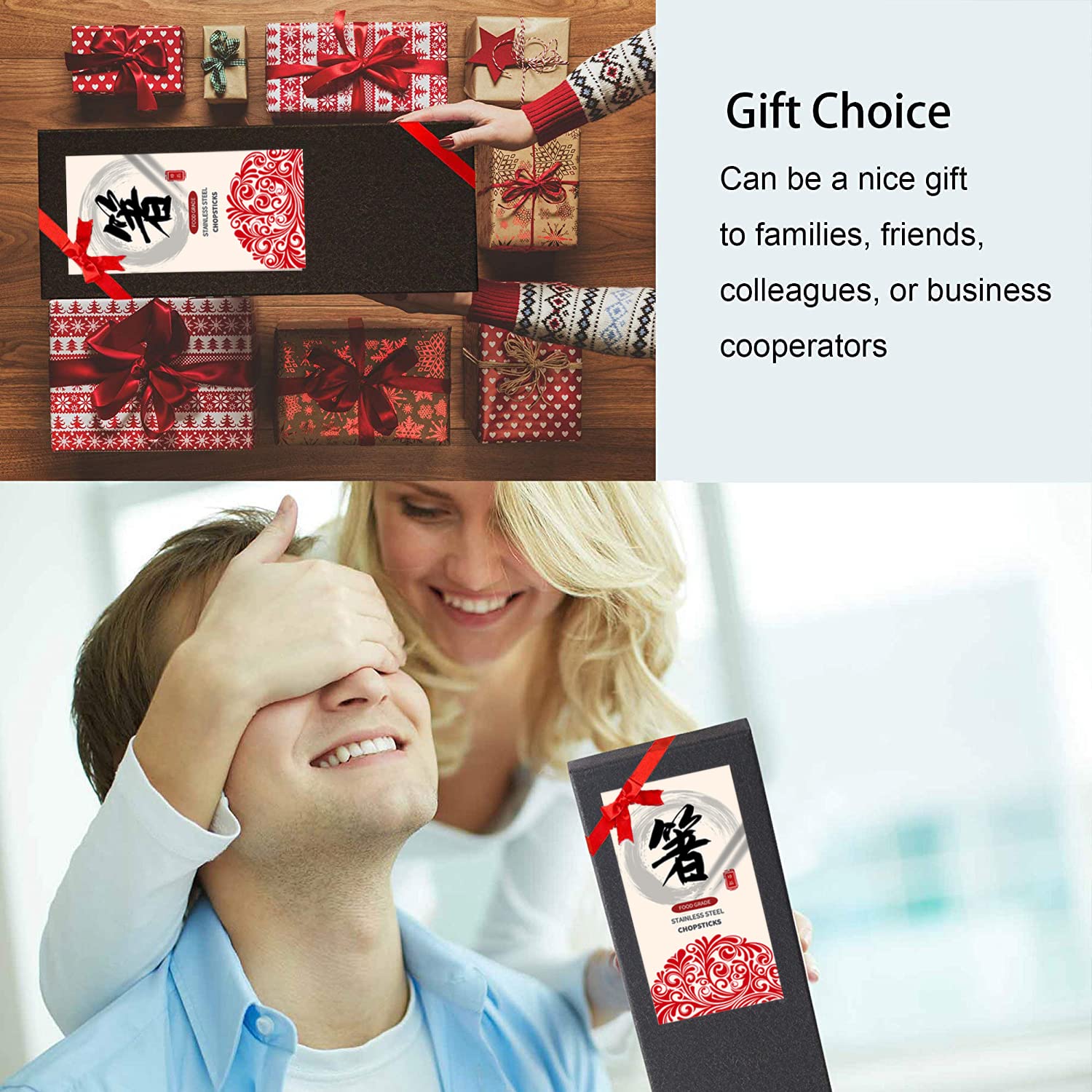 Premium Stainless Steel Chopsticks Gift Set – 5 Pairs Reusable, Non-Slip, and Dishwasher Safe