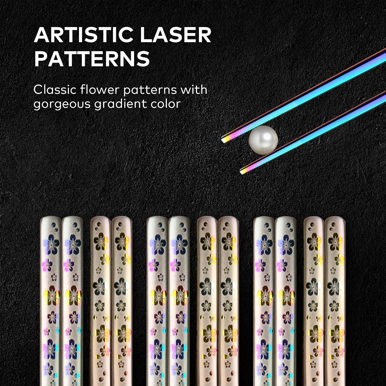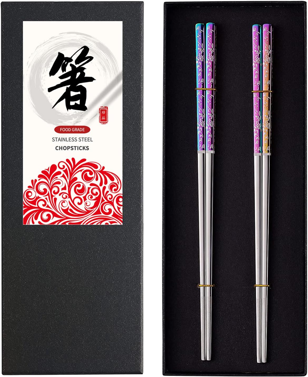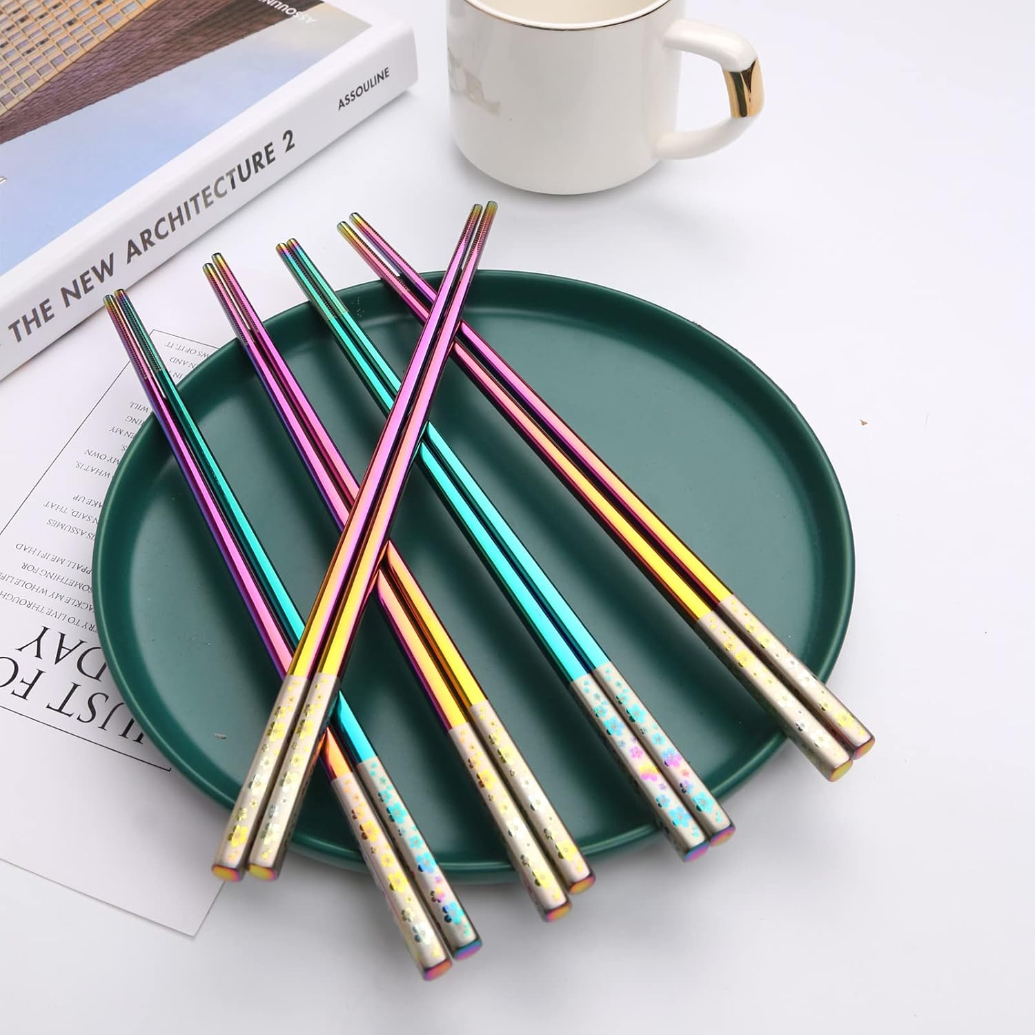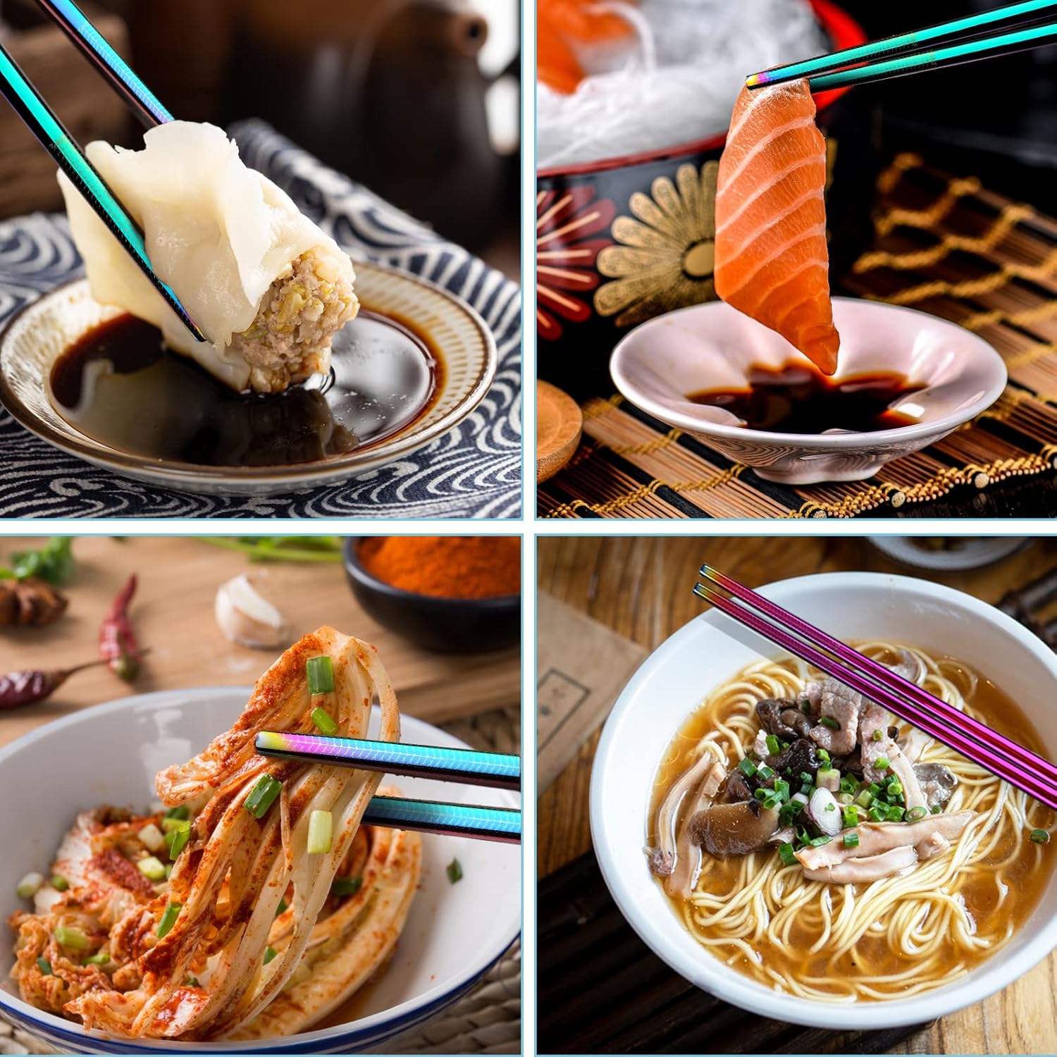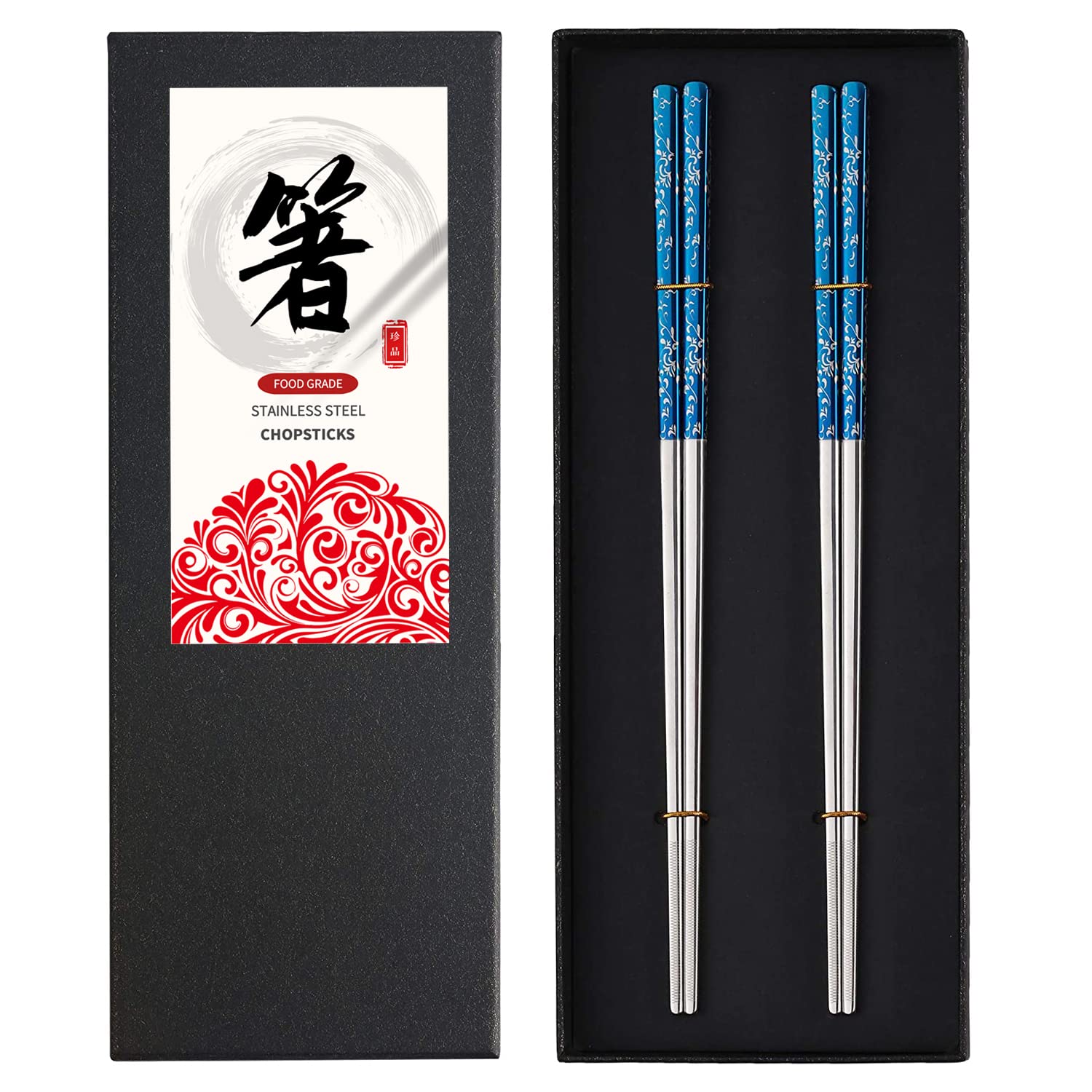 Premium Stainless Steel Chopsticks Gift Set – 5 Pairs Reusable, Non-Slip, and Dishwasher Safe