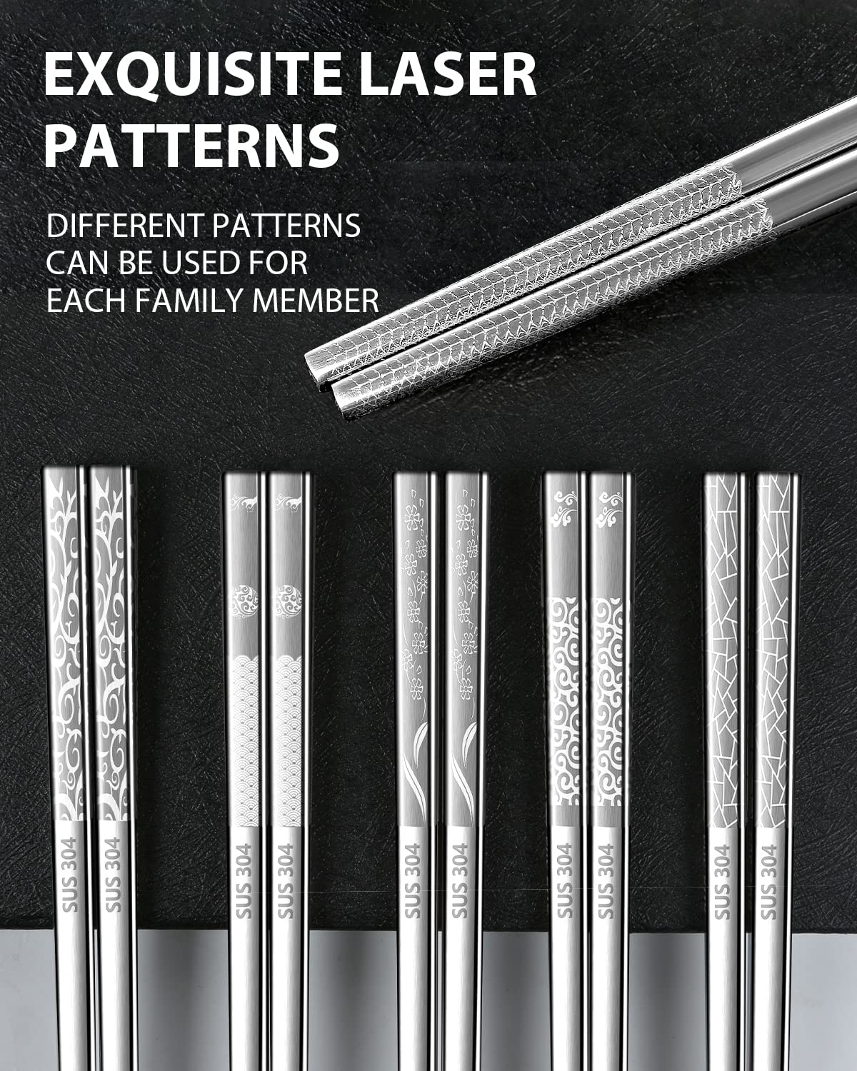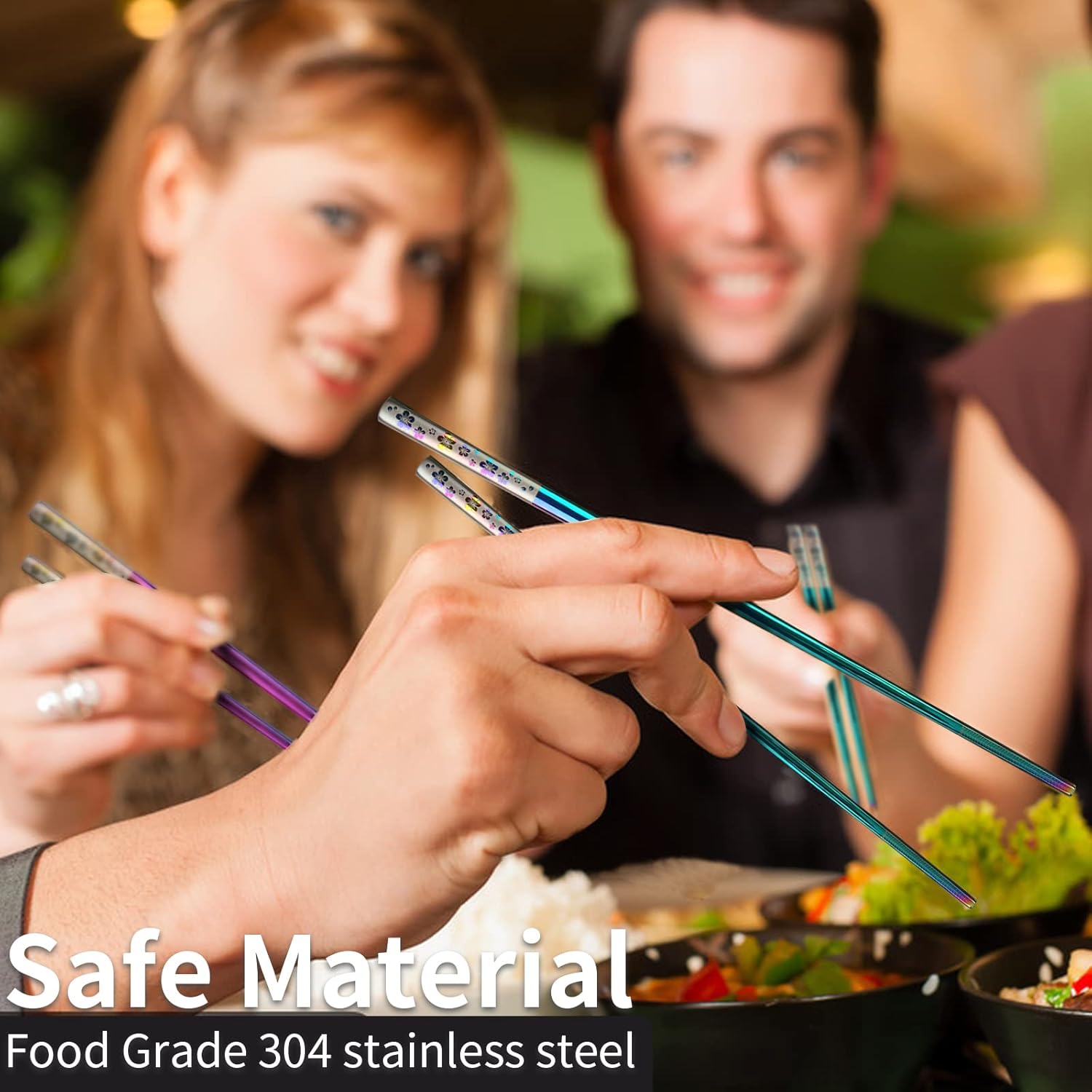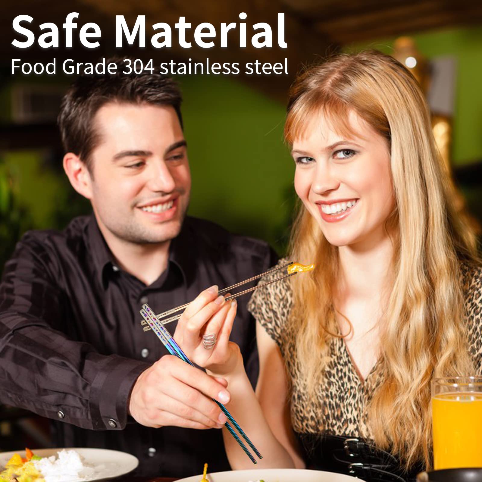 Superior Quality Material: Crafted from food-grade 304 stainless steel, ensuring a safe and durable experience. Unlike lower-quality metal chopsticks, our set is rust-resistant and long-lasting.