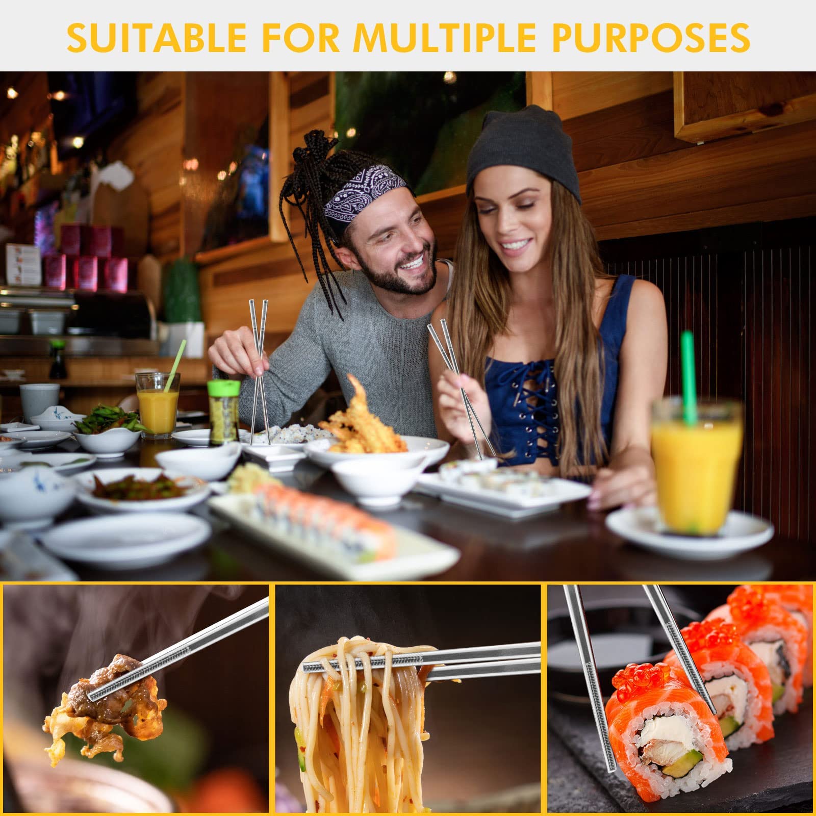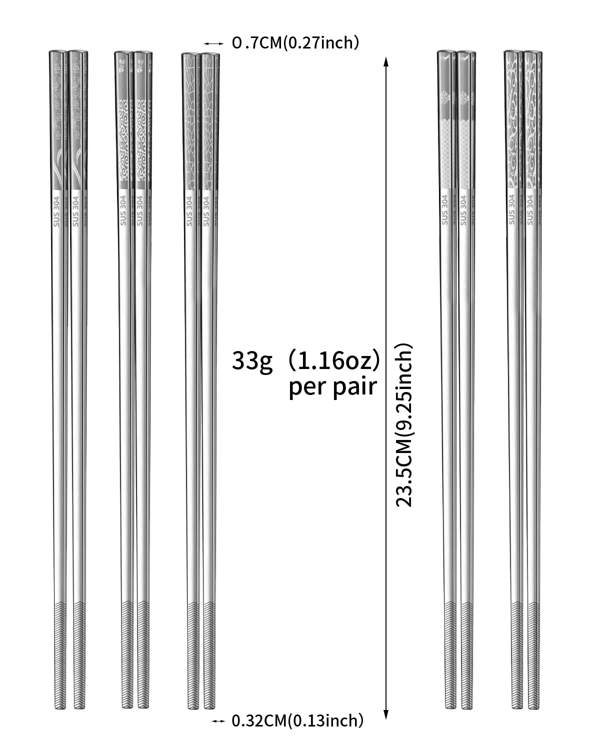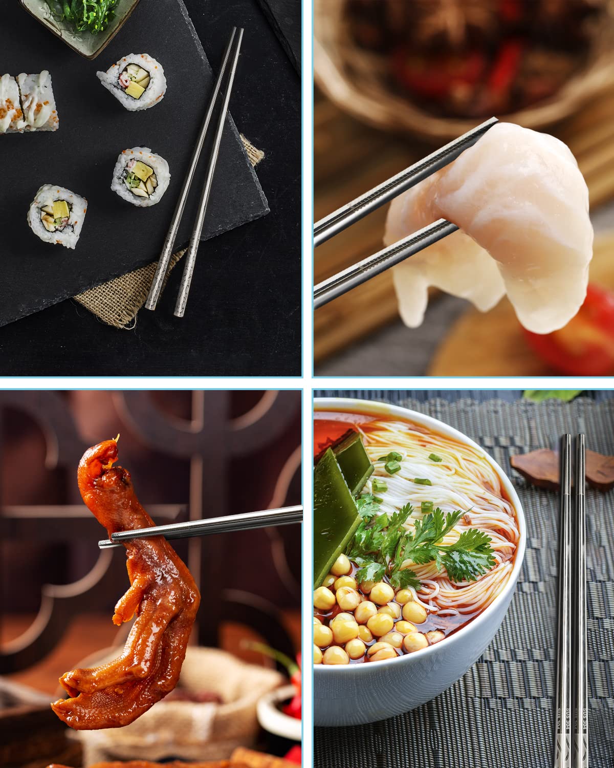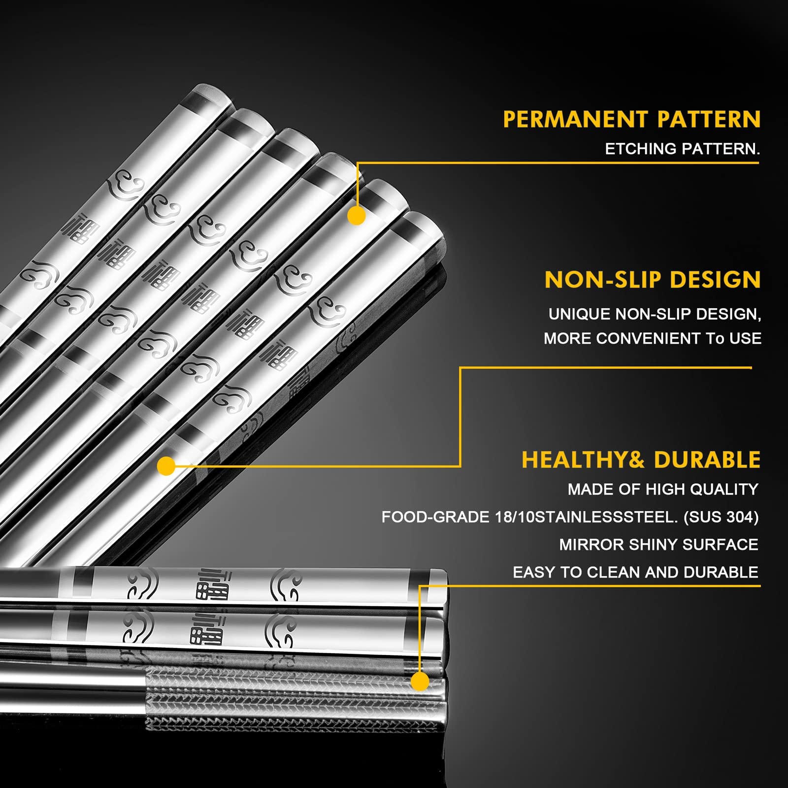 Superior Quality Material: Crafted from food-grade 304 stainless steel, ensuring a safe and durable experience. Unlike lower-quality metal chopsticks, our set is rust-resistant and long-lasting.