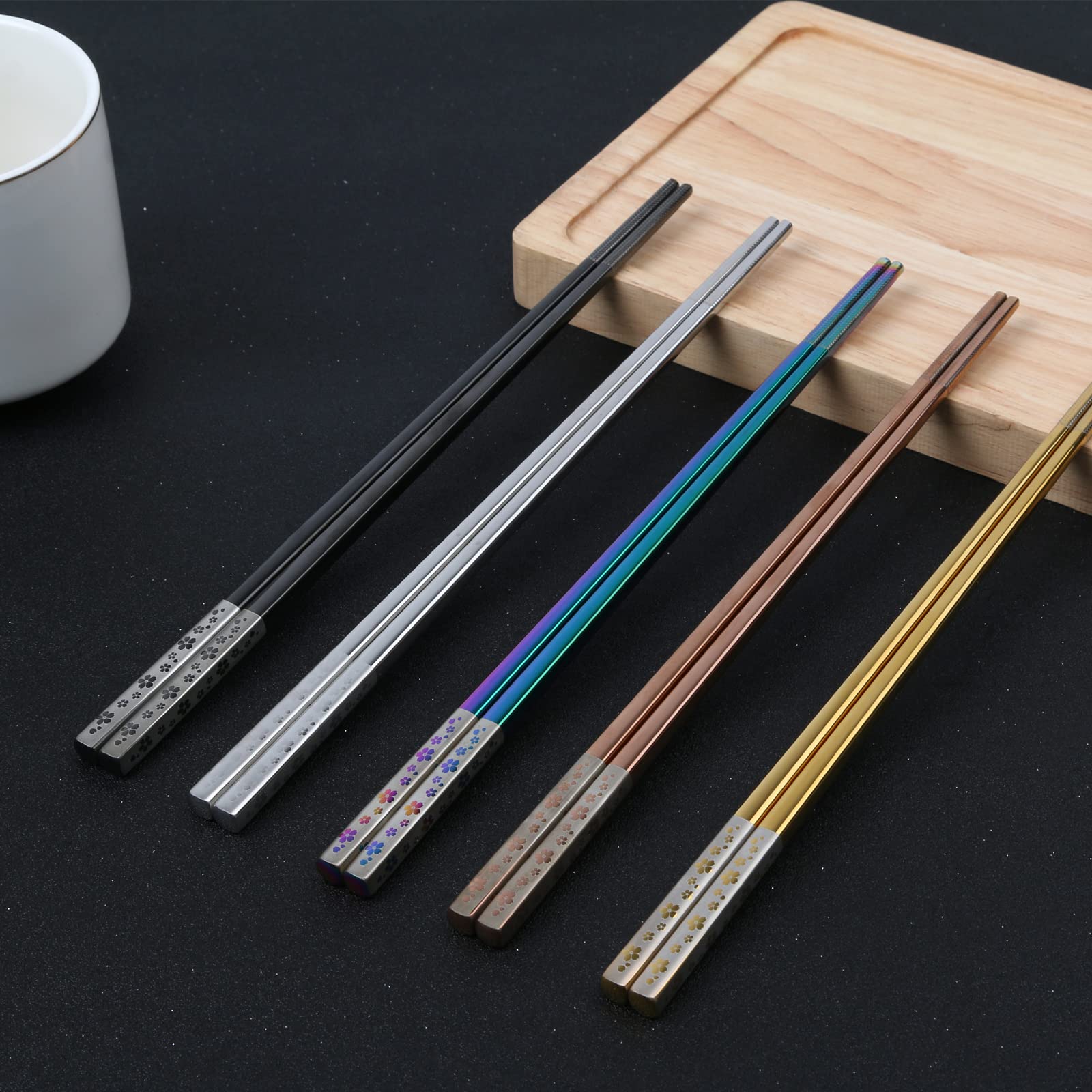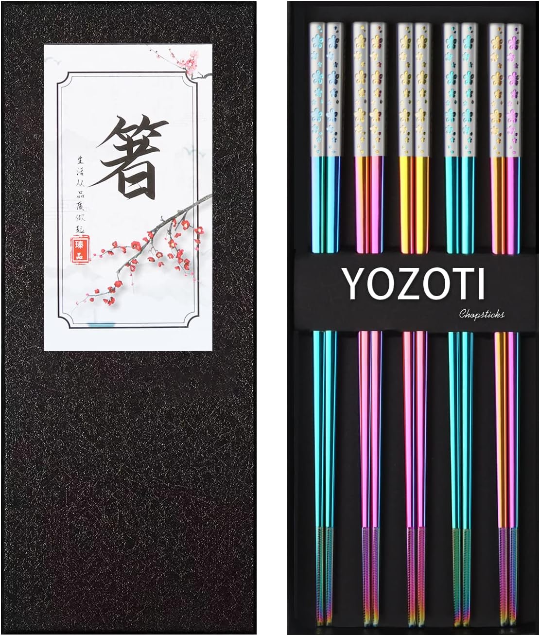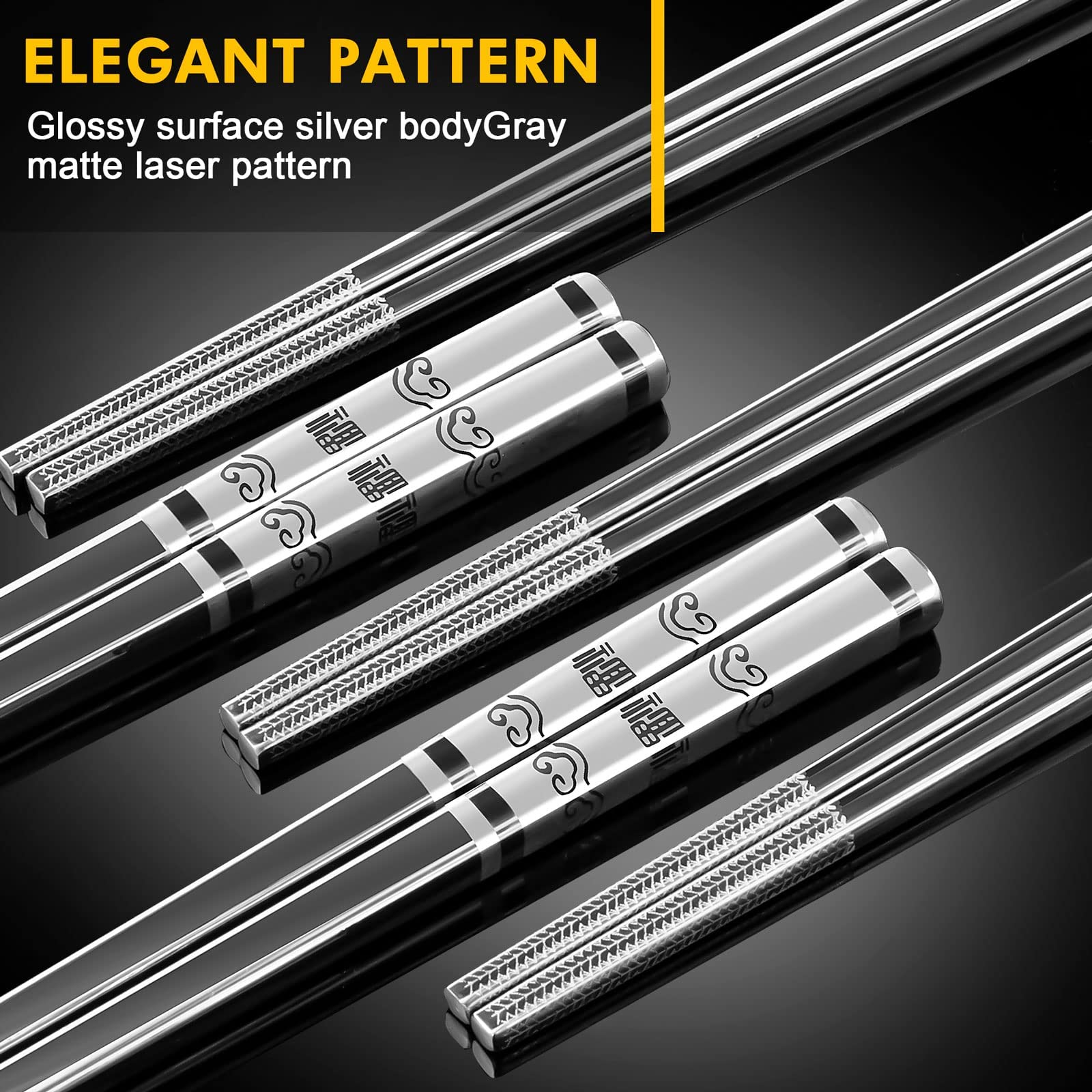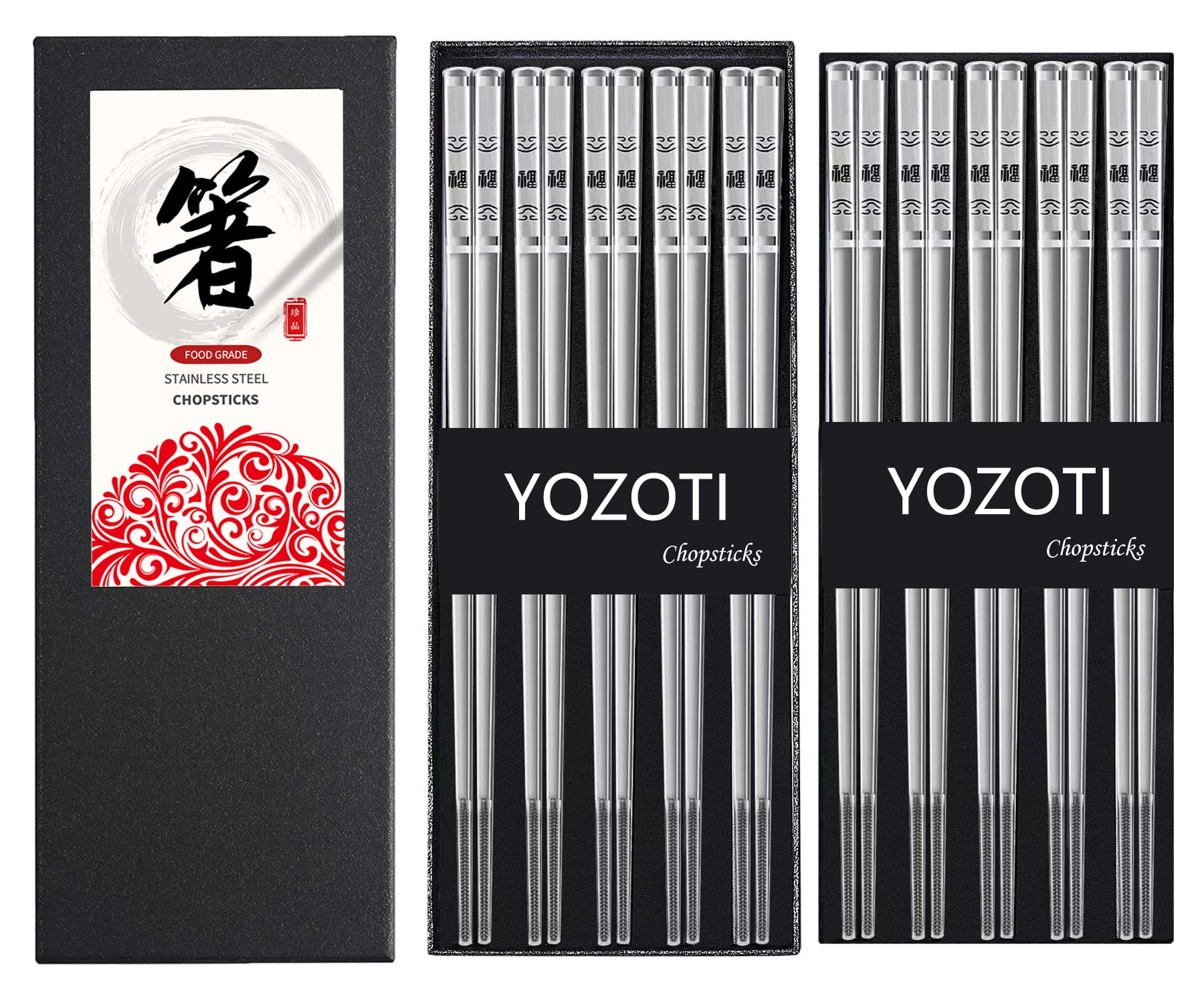 YOZOTI Stainless Steel Chopsticks, Silver Reusable Chopsticks, 5 Pairs Dishwasher Safe Metal Chopsticks, Easy to Use, Square Lightweight Chop Sticks, Gift Set (Silver)